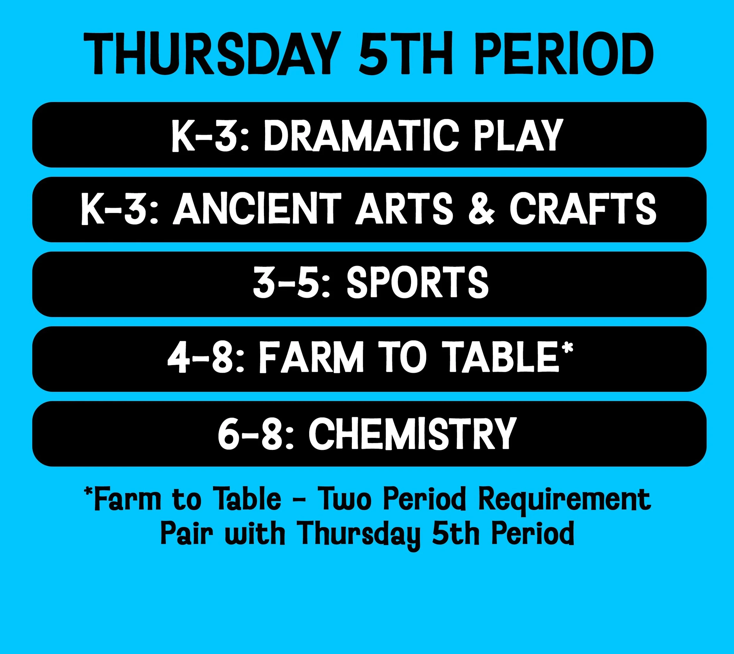 * Signing up for this class signs your student up for both Tuesday and Wednesday’s 5th periods.